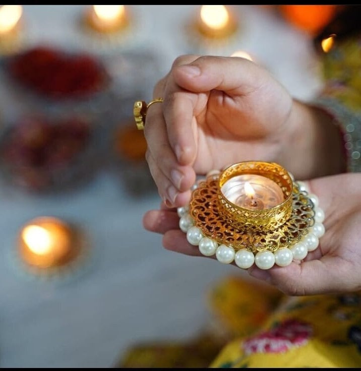 Decorate your home with our beautiful handmade tealight holders. Perfect for adding a touch of elegance to your Diwali celebrations or as a thoughtful gift. Our floral design and sturdy construction make them the perfect addition to any table. Experience the warmth and beauty of a flickering tealight with our tealight holders.
